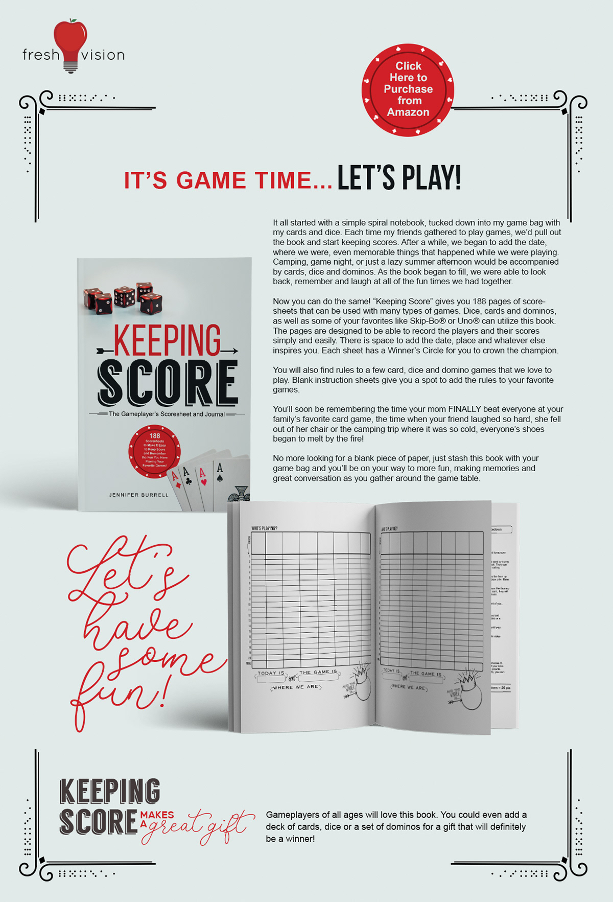 The Gameplayer's Scoresheet and Journal is 188 pages of scoresheets plus a quick guide to how to play a few of my favorite games.